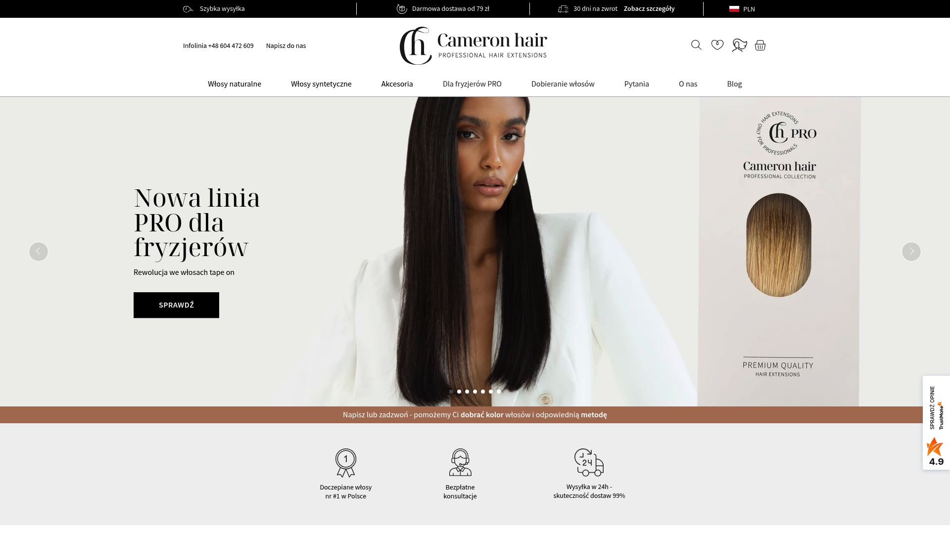 Cameron Hair łączy szeroki wybór metod z usługą konsultacji przy doborze, co wyróżnia markę na tle zwykłych sklepów online. Dodatkowa wartość to darmowa dostawa od 79 zł i przyjazna polityka zwrotów przez 30 dni.