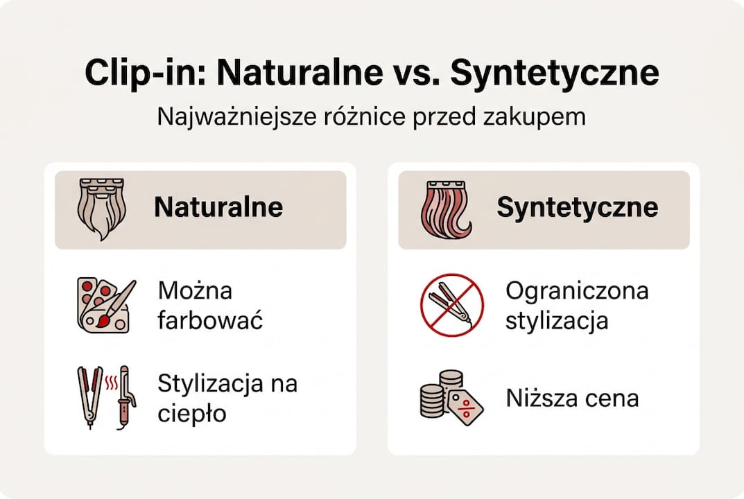 Nim zdecydujesz się na zakup, warto wiedzieć, czym tak naprawdę różnią się dostępne rodzaje doczepów. Najważniejszy podział to włosy naturalne kontra syntetyczne. Różnica jest spora i bezpośrednio wpływa na efekt końcowy.