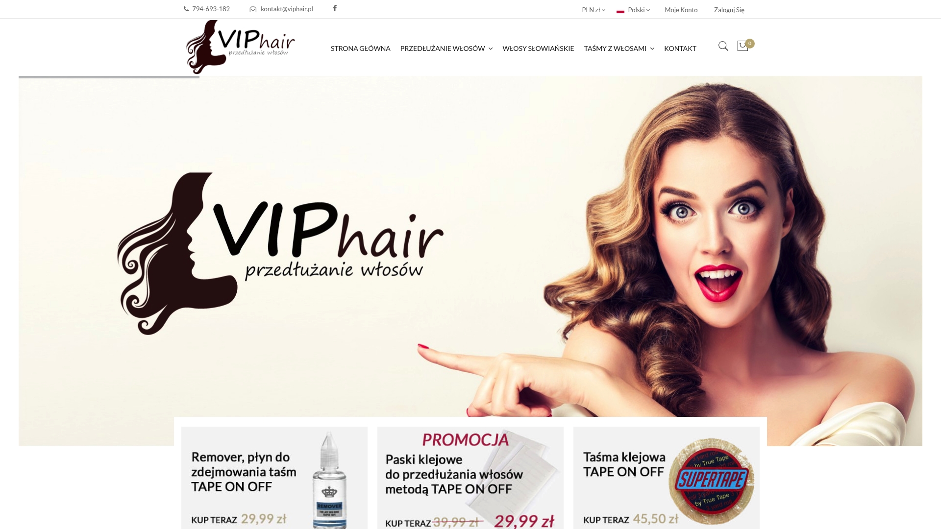 VIPhair to sklep online skoncentrowany na wysokiej jakości włosach doczepianych i akcesoriach, z ofertą dla salonów i klientek DIY. Firma stawia na bezpieczeństwo, wsparcie 24/7 oraz darmową wysyłkę powyżej 300 zł.