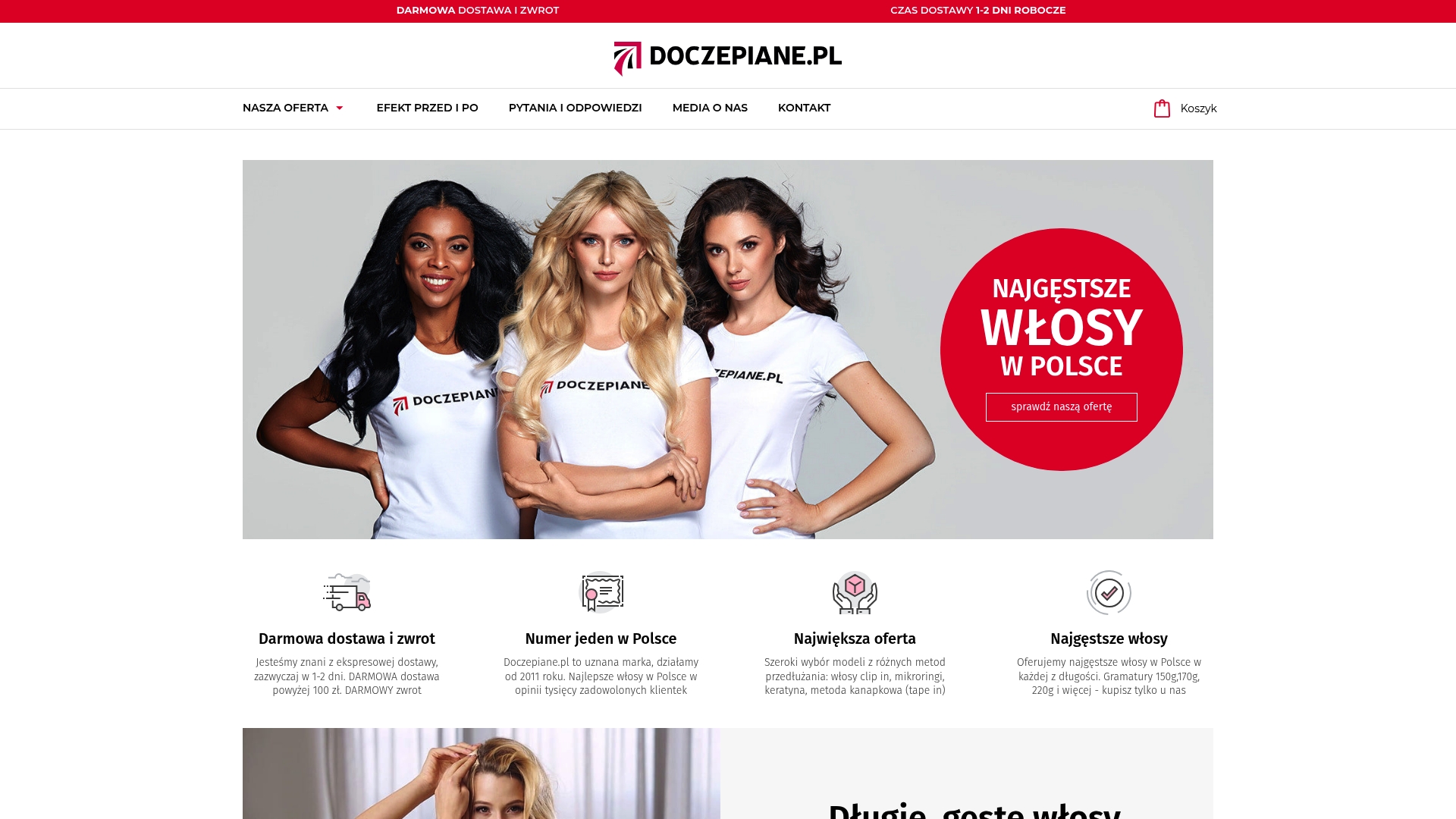 Doczepiane.pl to sklep z długo działającą pozycją na rynku włosów do przedłużania, obecny od 2011 roku. Marka oferuje szeroki wybór metod i długości oraz wysokie oceny klientów, co daje pewność jakości zakupów.